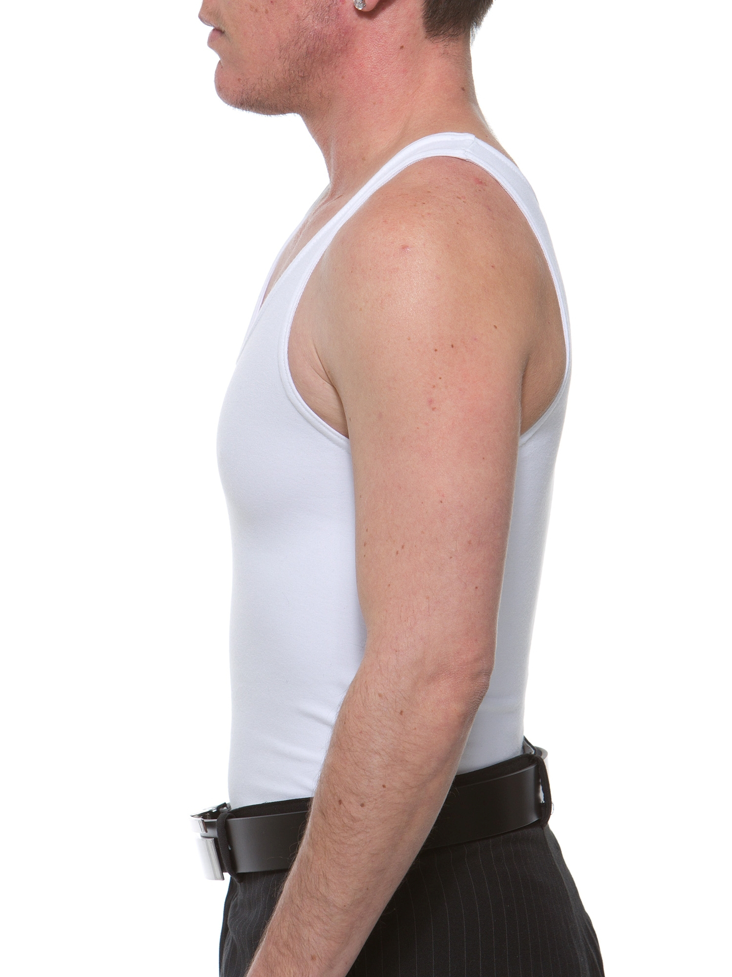 Size Chart Measure Your ChestFirst take a snug measurement under the bust line with a tape measure. Next take another measurement over the fullest part of your chest. Again not too tight but not too loose. Take the average of these two measurement and apply the result to the scale provided below. HOW TO WEARHold both straps of the shirt and step into the garment. Pull up the garment and slide arms through armhole and adjust for comfort. HOW TO CAREWash in cold water, gentle cycle, tumble dry low or flat dry. No bleach, no iron. Sizing Chart: The Cotton Lined Power Chest Binder Tank