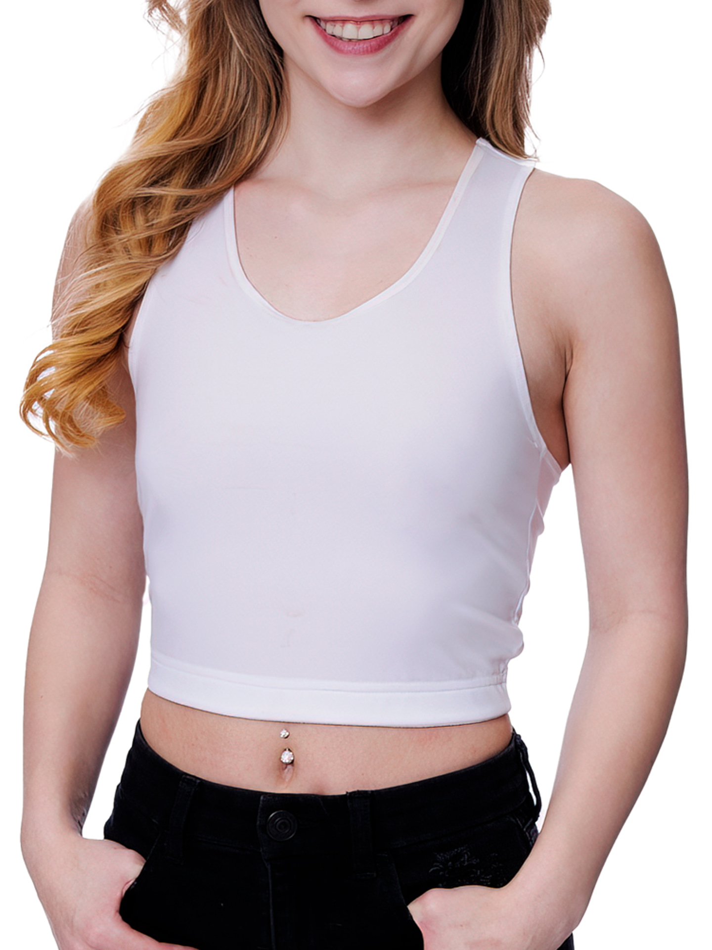 The Underworks Women's Firm Compression Racerback Crop Top Chest Binder and Minimizer is a high-performance garment designed to provide a smooth, flat chest appearance without compromising on comfort.